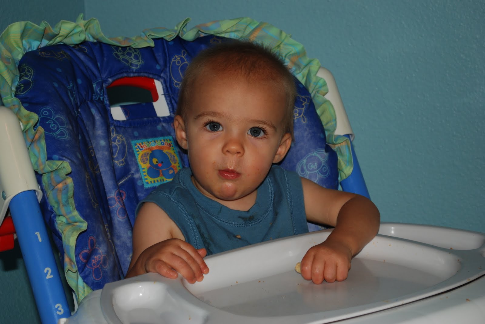 imagine what he'll do when you give thim the REAL cheese puffs!!! :) (and he's looking more and more like clara every day!)